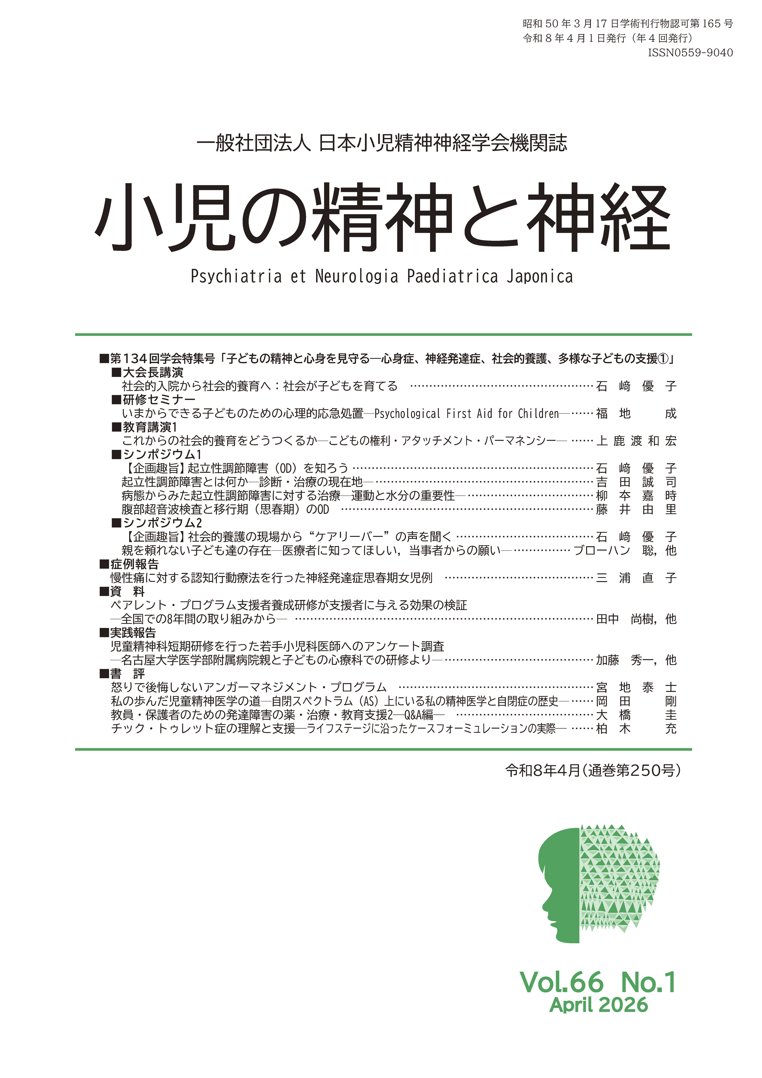 目次 第134回学会特集号「子どもの精神と心身を見守る―心身症、神経発達症、社会的養護、多様な子どもの支援①」